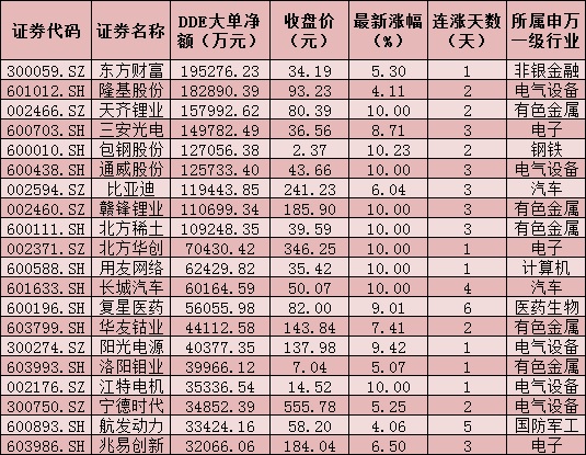 一、周三(7月21日)DDE大單資金凈買入TOP20