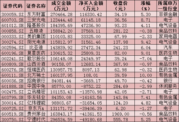 四、周三(7月21日)滬、深股通前十大成交活躍股交易情況