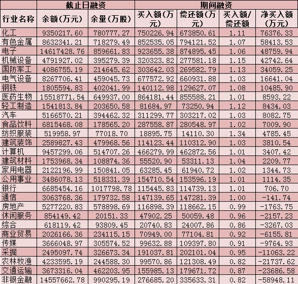 六、截至7月20日申萬一級(jí)行業(yè)兩融交易情況