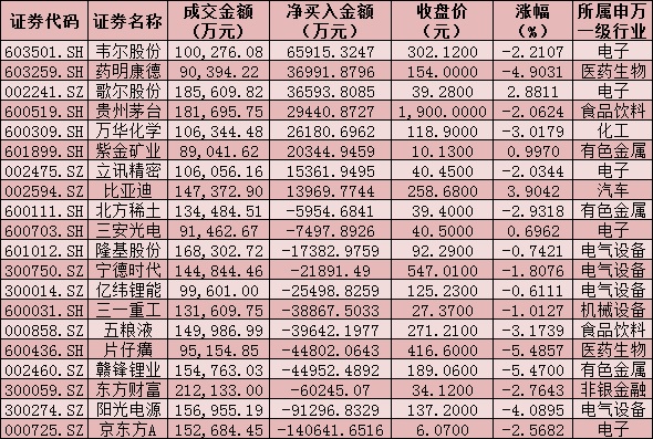 四、周五(7月23日)滬、深股通前十大成交活躍股交易情況