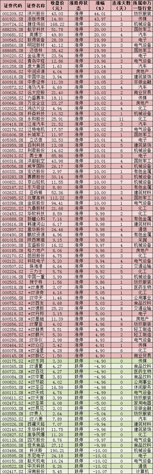 三、周五(7月23日)漲跌停股