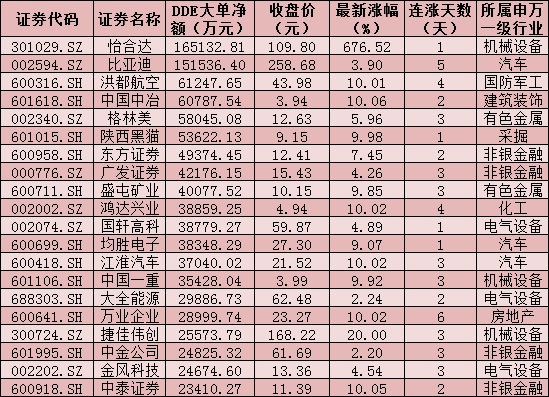 一、周五(7月23日)DDE大單資金凈買入TOP20
