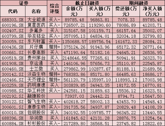 七、7月22日融資凈買入股TOP20