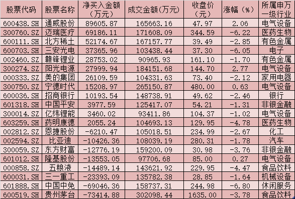 四、周二(8月17日)滬、深股通前十大成交活躍股交易情況