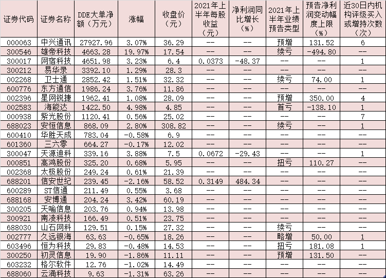 8月19日午盤兩市機構大單搶籌40股(名單)2021-08-19 11:40