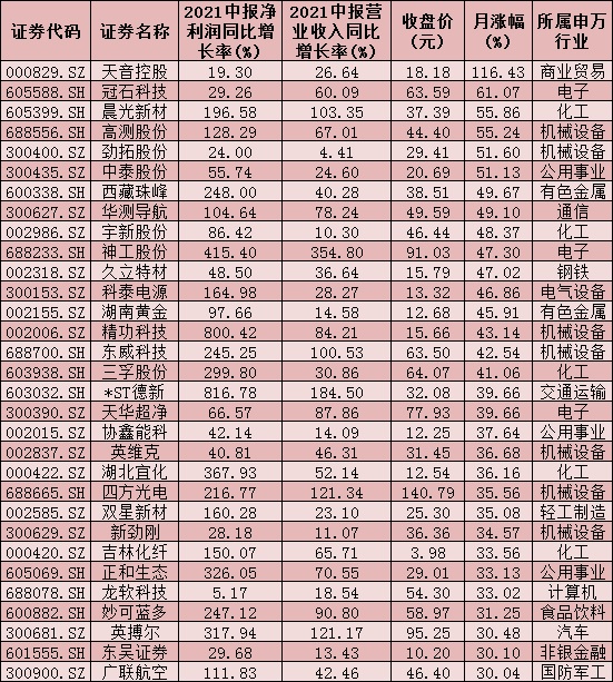 圖為:8月份以來漲幅超30%的凈利和營收雙增長股