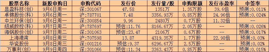 下周8只新股即將開啟申購!根據初步安排,9月6日-9月10日A股市場將迎來8只新股申購。