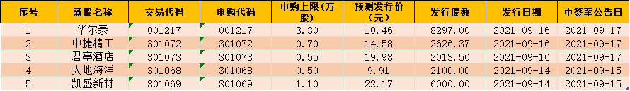 根據初步安排,本周(9月13日-9月17日)A股市場將迎來5只新股申購。