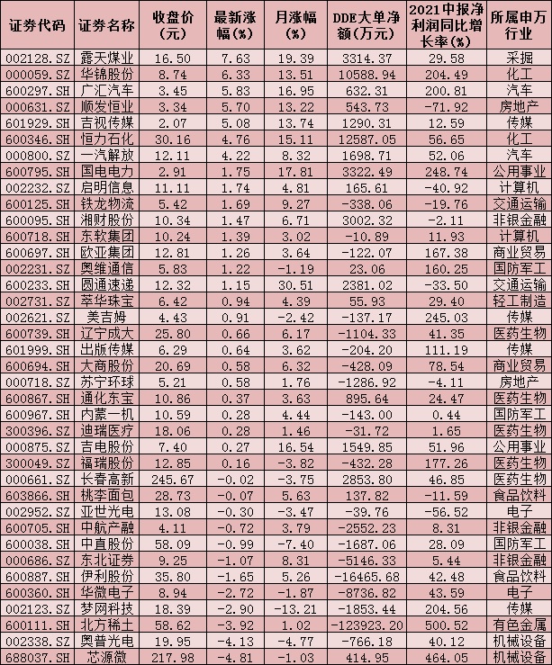 值得關注的是,東北振興概念股的業績普遍較好。統計發現,在38只東北振興概念股中,今年上半年凈利潤同比實現增長的公司達30家,占比近八成。其中,北方稀土、芯源微、國電電力、美吉姆、夢網科技、華錦股份、廣匯汽車、福瑞股份、歐亞集團、奧維通信、出版傳媒等11家公司,上半年凈利潤同比增幅均超100%。