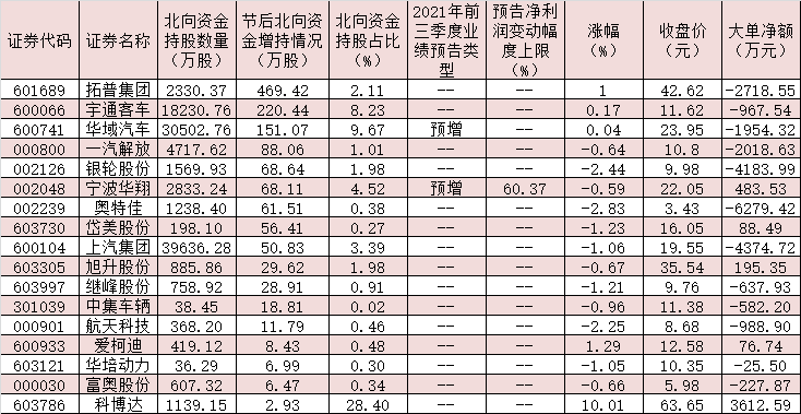 表:節后獲北向資金增持的汽車股一覽