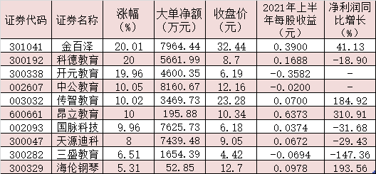 表:10月13日漲幅超5%的職業教育概念股一覽