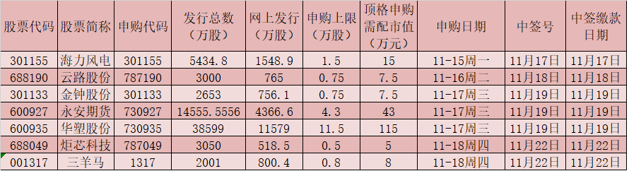 表:下周(11月15日-11月19日)新股申購(gòu)情況:
