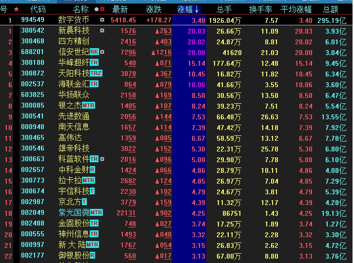熱點一:數字貨幣飆升逾3%四方精創等3股20CM漲停