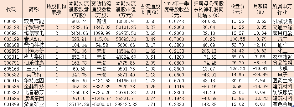 事實(shí)上,社保基金持倉股整體業(yè)績表現(xiàn)較好,上述15只個股中有10只個股2022年一季度歸母凈利潤實(shí)現(xiàn)同比增長,占比近七成。其中,雙良節(jié)能、川恒股份、紫金礦業(yè)等3只個股2022年一季度歸母凈利潤同比翻番。
