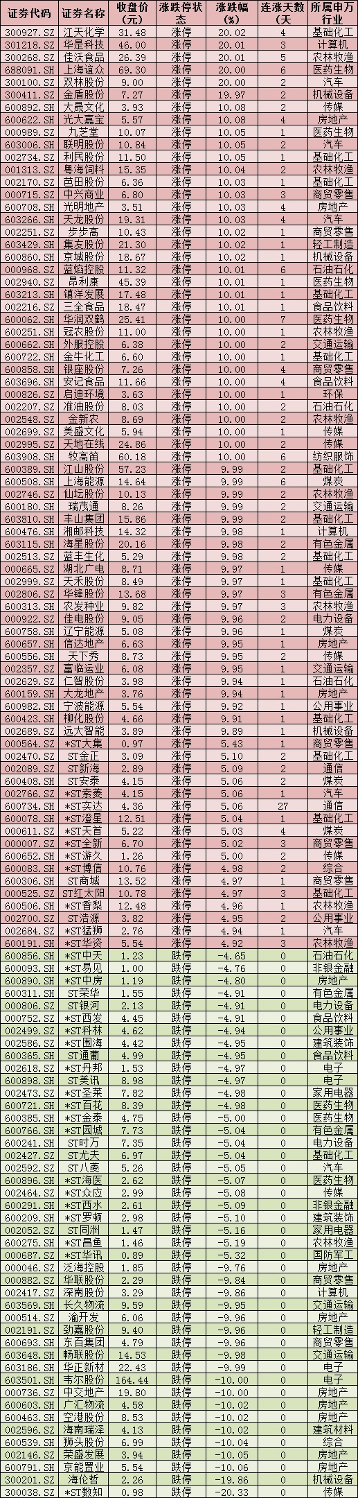 個股方面,周二,A股市場漲多跌少,共有2685只個股實現上漲,1870只個股下跌。其中,有74只個股報收于漲停板,跌停個股有44只。從所屬行業(yè)來看,漲停個股主要集中在化工、農林牧漁、傳媒、商貿零售、醫(yī)藥生物等行業(yè)。