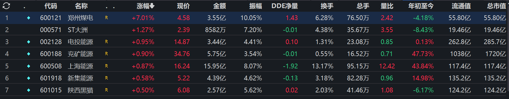 受此利好消息提振,4月21日早盤,同花順煤炭板塊呈現高開態勢,盤中一度漲幅高達1.88%左右。截至中午收盤,或受大盤拖累,板塊下跌1.28%。不過,部分個股仍呈現上漲態勢,鄭州煤電漲幅居首,達7.01%,ST大洲上漲1.27%。