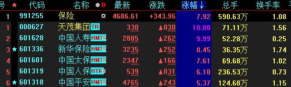 具體來看,6月15日上午,保險板塊表現搶眼,漲幅居首達7.92%。其中,天茂集團、中國人壽等2只個股攜手漲停。新華保險、中國太保等個股漲幅超7%。