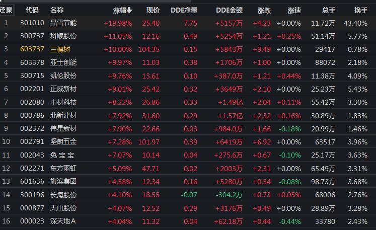 6月20日,建筑材料行業漲幅居首,達3.12%。其中,三棵樹、亞士創能、晶雪節能等3只個股漲停。
