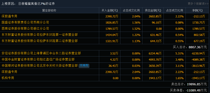 盤后龍虎榜數據顯示,深股通專用席位買入2390.72萬元并賣出2602.85萬元,1家機構專用席位凈賣出1943.17萬元。