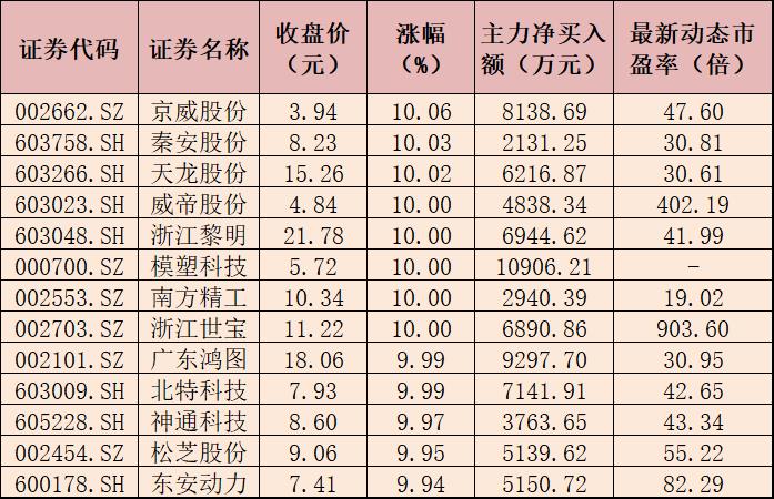 表:6月22日汽車零部件板塊內13只漲停股一覽