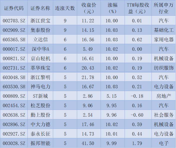 漲停方面,有82只個股漲停,其中,有14只漲停股,股價已連續上漲超過5個交易日。跌停方面,有8只個股跌停。從行業角度看,汽車行業漲停個股數量居首,達到17只,緊隨其后的是機械設備和電力設備,漲停股數分別為13只和9只。