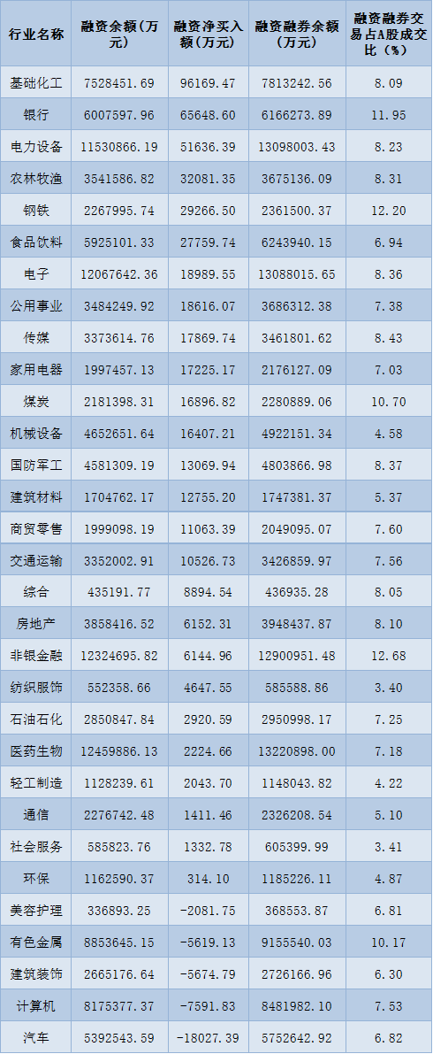 表:7月6日申萬一級(jí)行業(yè)兩融交易情況: