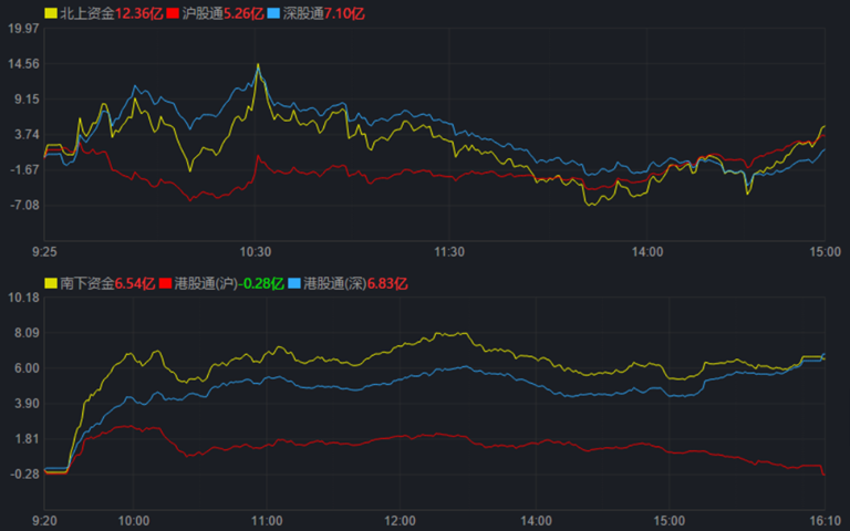 今日A股三大股指回落,呈滬強深弱格局,截至收盤,上證指數跌0.25%報3356.08點,深證成指跌0.61%報12857.13點,創業板指跌1.13%報2817.64點;兩市合計成交額達10293.63億元,北向資金凈買入12.36億元。總體來看,兩市個股漲多跌少,交易的4818只個股中上漲股2554只。