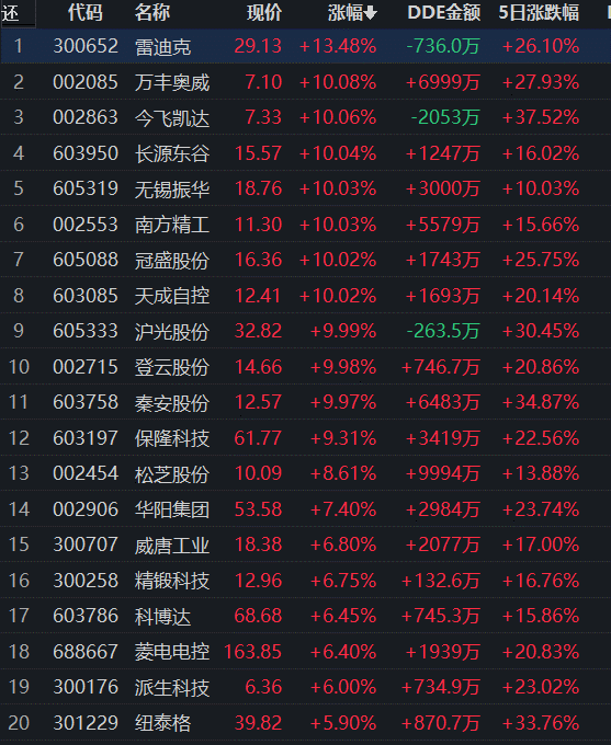 從漲停股最多的汽車零部件行業看,截至7月19日11:30,行業交易中的196只個股,有151只上漲,其中,有10只個股漲停,有24只個股漲幅超5%。從資金流向看,汽車零部件行業今天上午大單資金凈流入額達5.77億元,居各行業第2位。