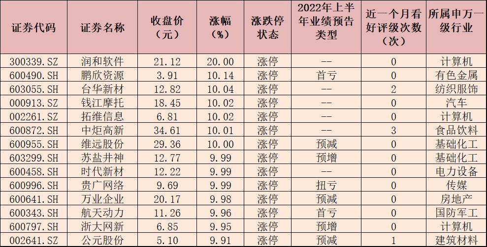 表:7月19日漲停的中證1000指數成份股一覽