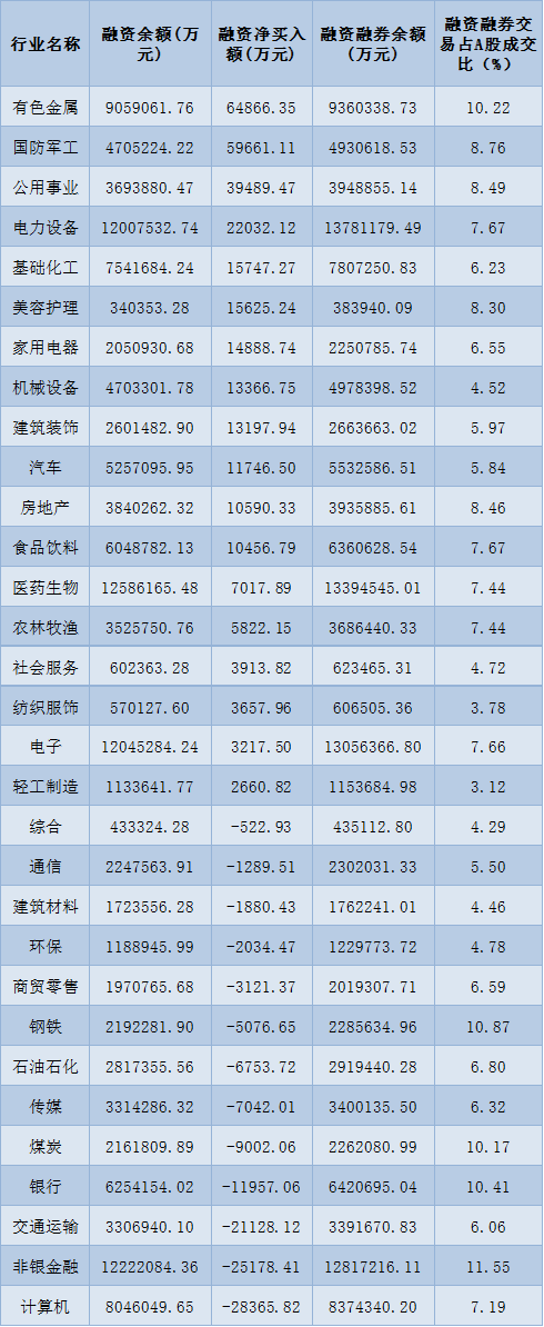 表:7月20日申萬一級行業兩融交易情況: