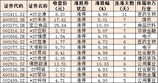 表:今日漲停且連漲5日以上的個股情況: