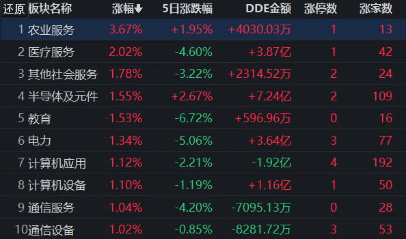 從漲幅居首的農業服務行業看,截至8月4日上午收盤,行業交易中的15只個股,有13只上漲。從資金流向看,農業服務行業今天上午大單資金凈流入額達4030.03萬元,居行業第13位。