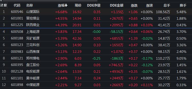 8月12日,煤炭行業(yè)漲幅居首達2.41%。其中,山煤國際、晉控煤業(yè)、陜西煤業(yè)等煤炭股漲幅居前,均超4%。