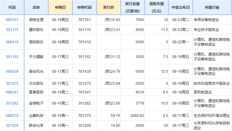 新股方面,根據發行安排,A股市場下周(8月15日-8月19日)將有10只新股申購。