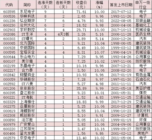 表:連續(xù)上漲3天且今日收盤漲停股一覽