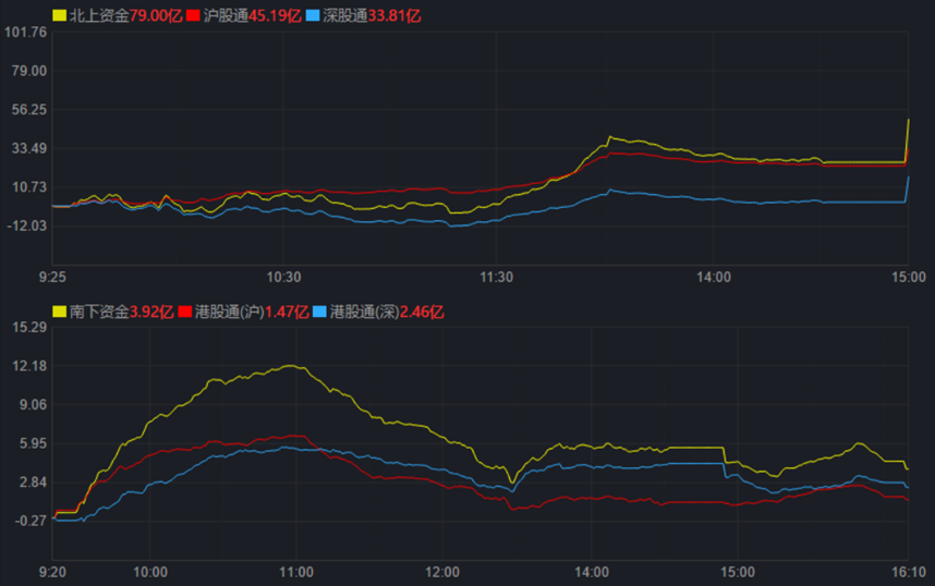 早盤,A股三大指數低開后震蕩走低,滬指失守3200點整數關口,午盤后在休閑食品、鋰電池和新零售板塊的帶動下回升,北上資金也在午后出現明顯流入,最后的集合競價階段更是大量凈買入,形成凈買入分時圖上的直線拉升,滬指收復3200點。截至收盤,上證指數跌0.78%,深證成指跌1.29%,創業板指跌1.60%;滬深兩市合計成交額10023.6億元,放量19.54%;北向資金凈買入79億元;總體來看,A股個股漲少跌多,上漲個股為695只,下跌個股4150只。