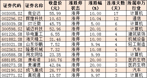 表:連續上漲3日且今日收盤漲停個股情況: