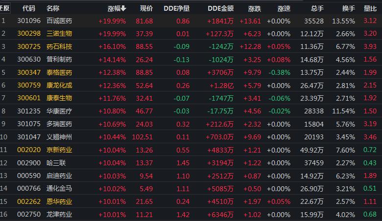 醫藥生物行業飆升近5%