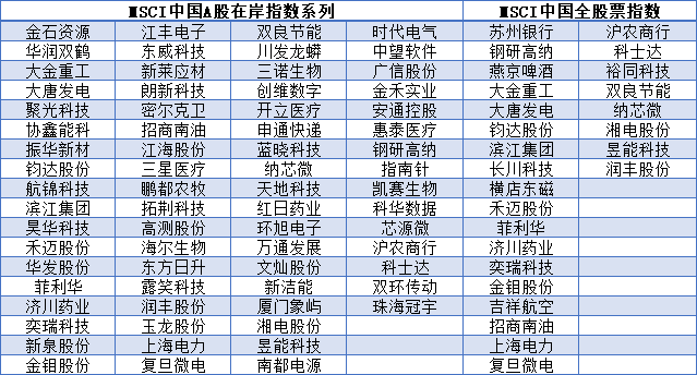 本次官方網站公布的指數調整中,涉及A股的有MSCI中國A股在岸指數和MSCI中國全股票指數。
