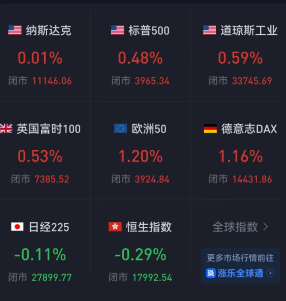 周五,美國三大股指全線收漲,道指漲0.59%報33745.69點,標普500指數漲0.48%報3965.34點,納指漲0.01%報11146.06點。本周,道指跌0.01%,標普500指數跌0.69%,納指跌1.57%。