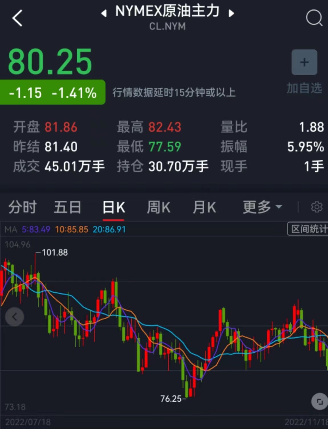 周五,國際油價全線下跌,美油12月合約跌1.4%,報80.25美元/桶。布油明年1月合約跌2.14%,報87.86美元/桶。本周,美油12月合約跌9.78%,布油明年1月合約跌8.47%。