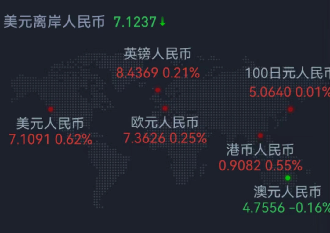 周五在岸人民幣兌美元16:30收盤報7.1275,較上一交易日漲16個基點,本周累跌169個基點;周五夜盤23:30收報7.1160。人民幣兌美元中間價報7.1091,調貶436個基點,本周累計調升816個基點。交易員指出,人民幣可能已經見底,震蕩中樞重返7.15附近。
