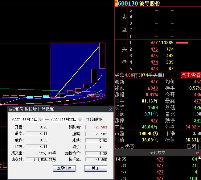11月22日,波導股份沖至漲停,截至收盤,報4.77元,連續8個交易日實現上漲,累計漲幅達23.9%。