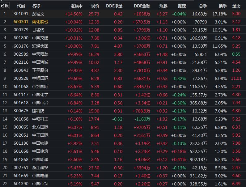 11月22日,建筑裝飾行業漲幅居首達3.2%。其中,中國海誠、南化股份、中國交建、匯通集團、正平股份、甘咨詢、中天精裝等7只概念股集體漲停。