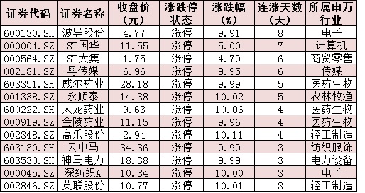 11月22日,跌停方面,有28只個股跌停。漲停方面,有48只個股漲停,其中,有13只漲停股已連續上漲3個交易日以上。從行業方面看,建筑裝飾(7只)、傳媒(6只)等行業漲停股居前,均在6只及以上。
