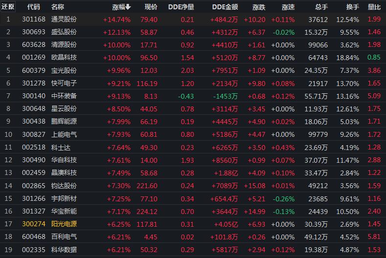 11月23日,電力設備行業漲幅居首,達1.94%。其中,清源股份、歐晶科技、寶光股份、ST森源等4只概念股集體漲停。