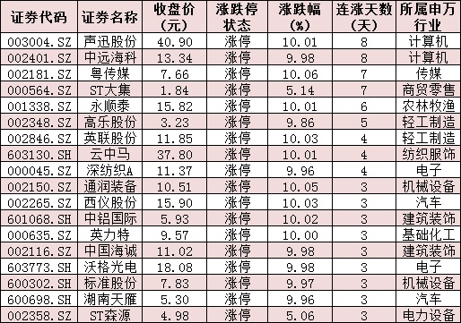 11月23日,跌停方面,有37只個股跌停價報收。漲停板方面,有50只個股漲停,其中,有18只漲停股,股價已連續上漲3個交易日以上。從行業方面看,建筑裝飾(8只)、機械設備(6只)等行業漲停股居前,均在6只及以上。