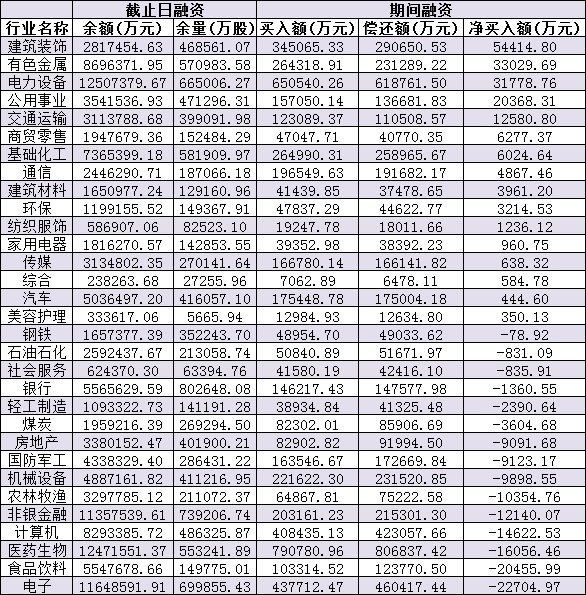 表:11月23日申萬(wàn)一級(jí)行業(yè)兩融交易情況: