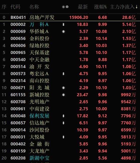 從早盤表現強勢的房地產開發行業看,截至11月29日11:30,該行業交易中的113只個股全線上漲,其中79只漲幅超5%。從資金流向看,該行業今天上午大單資金凈流入額達28.6億元,居行業第2位。
