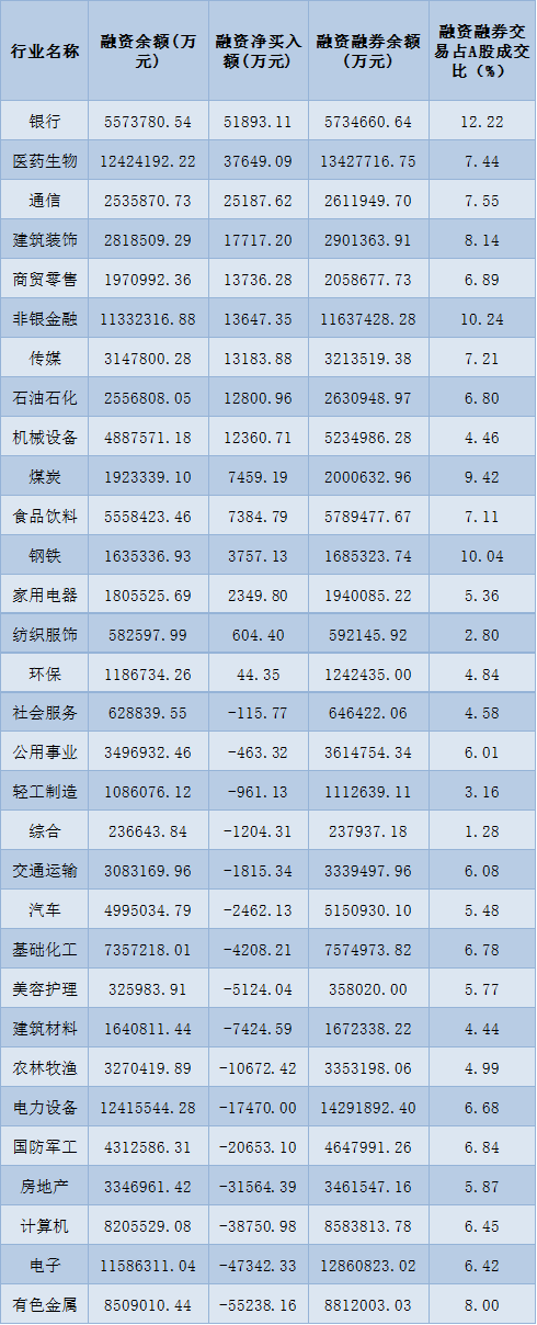 表:11月28日申萬一級行業兩融交易情況: